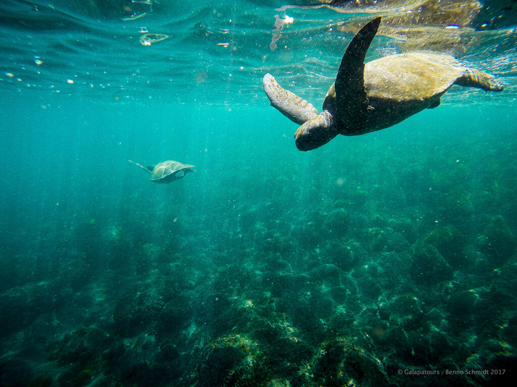 You discover the fascinating underwater world of Vicente Roca Point. This site offers great deep-water snorkeling sessions at one of the richest marine havens on Earth (Bolivar Channel). Some of the species that you observe include sea green turtles, sharks, and rays. You also take a dinghy ride along the coast to observe a great diversity of sea and coastal birds including Nazca and blue-footed boobies, noddies, brown pelicans, penguins, and flightless cormorants.